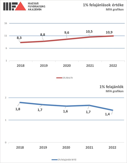 Csaknem fél milliárd forinttal 11 milliárdra nőtt az 1% összértéke, miközben sajnos a felajánlással élő adófizetők tábora több mint 200 ezer fővel csökkent. Utóbbiban szerepet játszhatott az év eleji családi szja visszatérítés is. A háború és a menekültválság hatása látványos: a karitatív szervezetek 1% bevétele nagyot ugrott - idézi a 24.hu a Magyar Fundraising Akadémia elemzését.