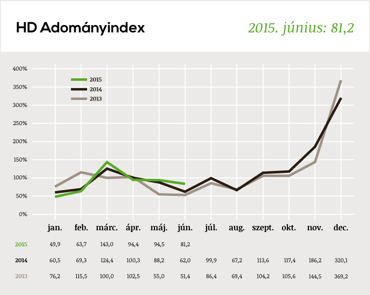 Júniusban 81,2 ponttal zárt indexünk, ami így bár az éves átlag alatti szám, de csak első ránézésre tűnhet gyenge eredménynek. A hagyományosan adományokban leginkább szűkös első nyári hónapban ezzel ugyanis új rekord született, az index júniusban még sosem lépte át a 70 pontos határt. Mindez a májusi rekorddöntést követően immár okot ad az optimizmusra!