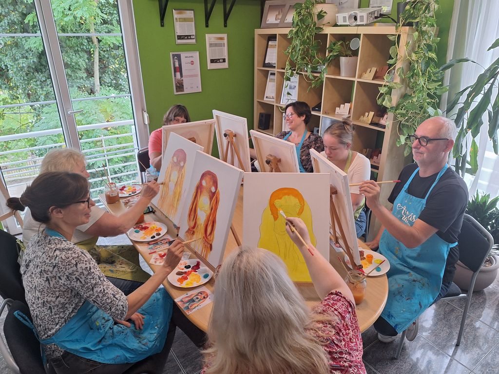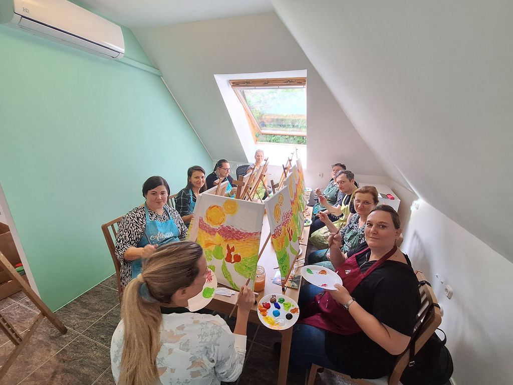 Az idei karácsonyi ajándékkészítéshez nem volt másra szükség, csupán festővászonra, némi akrilfestékre, türelmes instruktorokra, és a legfontosabb: a kollégák lelkesedésére. A céges csapatépítő keretében szervezett élményfestés nagy sikert aratott, mindenki kiélte művészi ambícióit, és nem titok: remek festmények születtek. A műalkotásokat ügyfeleinknek és partnereinknek ajándékozzuk idén karácsonykor.