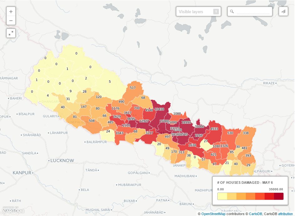 A nemzetközi akciók során folyamatosan gyűlnek az adományok a nepáliak számára. Ám ahhoz, hogy megfelelően célba is érjenek a segélyszállítmányok, tudni kell, hogy valójában hol van éppen rá a legnagyobb szükség. A Code for Nepal non-profit szervezet éppen ezért frissíti folyamatosan azt az interaktív térképet, mely a sérültek és halottak száma mellett a lerombolt vagy megrongálódott épületekről számol be. Mint a Time Magazin cikkéből kiderül, a Katmandu-völgyön kívül eső kis falvakra sokkal kisebb figyelem jut, holott nekik sokszor még nagyobb szükségük van a segítségre.