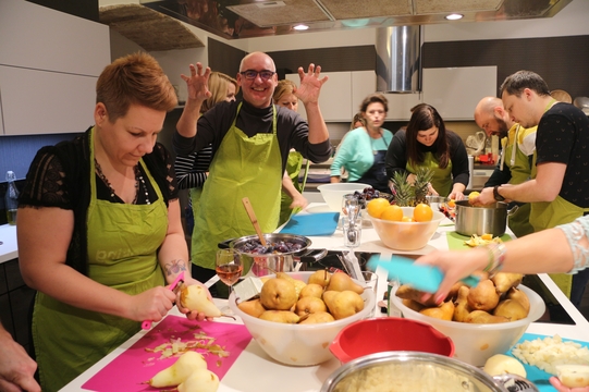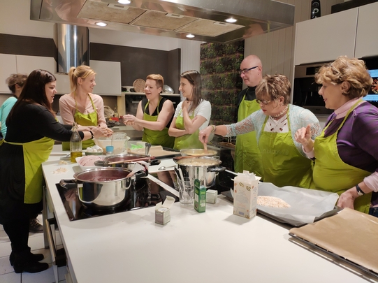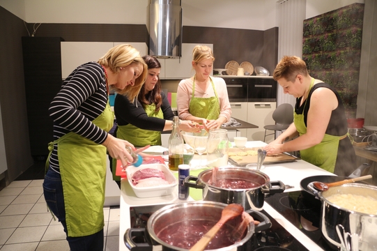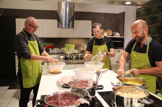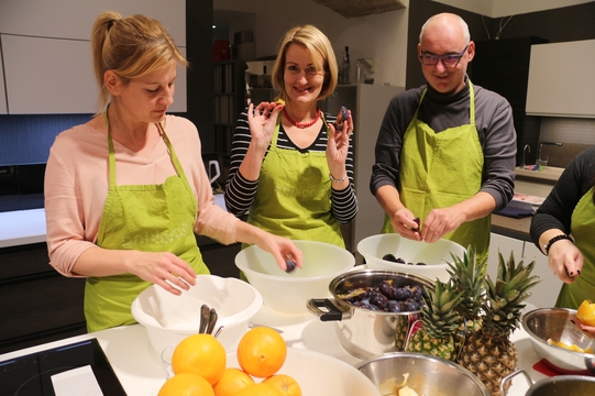 A főzés során mindenki serényen kivette részét a munkából. A gyümölcsök és egyéb hozzávalók hosszas és alapos előkészítése után szakértő séf segítségével különleges ízvilágú lekvárokat alkottunk: karácsonyi fűszerezésű szilvalekvárt, kókuszos-ananászos narancslekvárt valamint szarvasgombás körtelekvárt. A csapatmunkát pedig egy közösen elkészített vacsorával zártuk, no és teszteltük a finomságokat, amelyekkel reméljük ügyfeleinknek is örömet fogunk okozni!