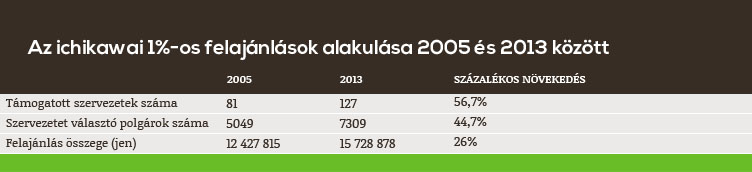 A lassan tíz éve működő rendszer egyre több ichikawa-it szólít meg: míg 2005-ben csupán ötezren rendelkeztek adójuk 1%-áról, addig 2013-ban több mint 7300-an – ám a 230 000 adófizetőhöz viszonyítva ez még nagyon alacsony szám.