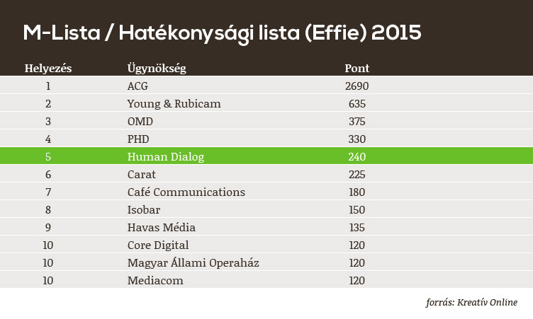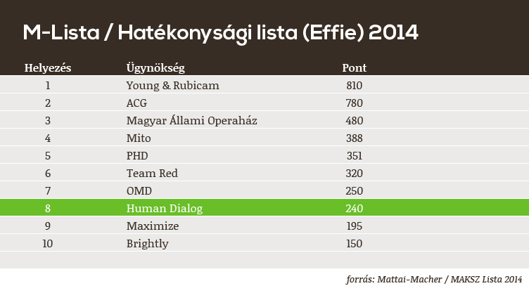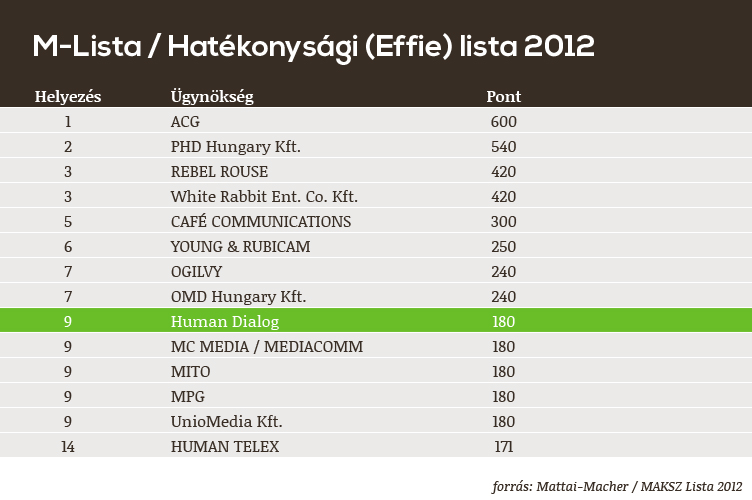 A reklám- és kommunikációs ügynökségeket rangsoroló M-Listát Macher Szabolcs (Mattai) együttműködésével évente készíti el a MAKSZ. A rangsort az ügynökségek hazai és nemzetközi szakmai versenyeken elért eredményei alapján állítják össze a lista készítői.
